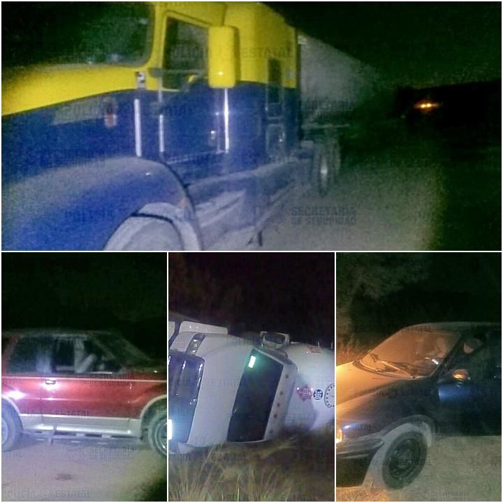 En el área se localizaron, entre otros, un tractocamión marca Kenworth con tanque y pipa de gas LP con franjas de colores gris y naranja, con tres mil litros de hidrocarburo, y otra unidad similar con una capacidad de 30 mil litros al 10 por ciento de su capacidad.