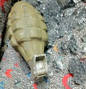 *el explosivo encontrado, es una granada de fragmentación tipo piña ofensiva, *No se descartó que se trate de un acto intimidatorio por parte de grupos de extorsionadores