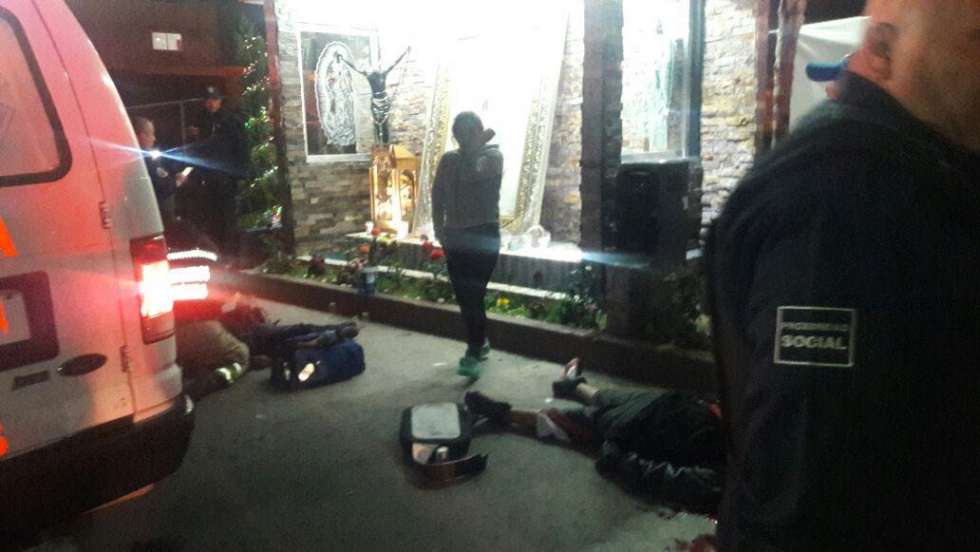 Al sitio, arribaron elementos de la Policía Municipal y de la Secretaría de Seguridad Ciudadana del Estado de México (SSEM), quienes encontraron a un costado de una camioneta de la marca Toyota con número de placas de circulación LYS- 32-03 del Estado de México con varias perforaciones de bala, a dos hombres lesionados por impactos de arma de fuego y solicitaron una unidad de emergencia.
