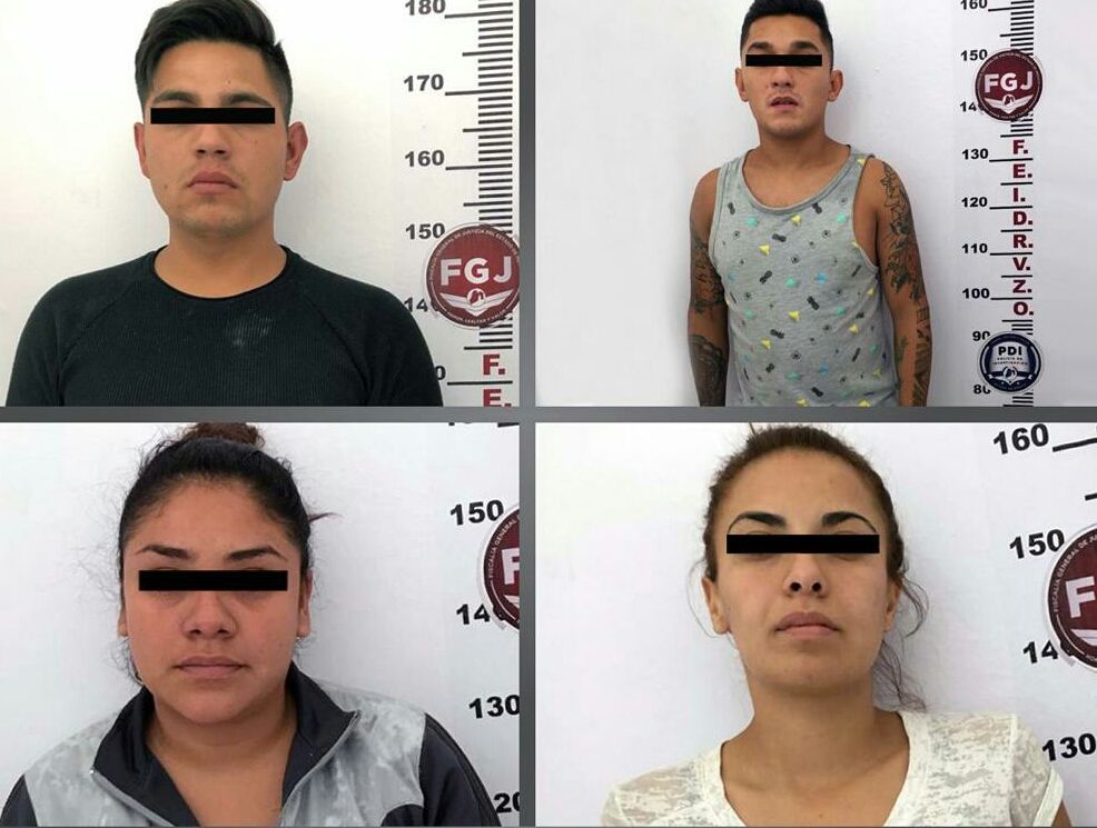 Se trata de Ever Elías ’N’, de 26 años de edad; Christopher Jovani ’N’, de 27 años; Getsemaní Monserrat ’N’, de 26 años y Sandra ’N’, de 26 años, quienes fueron detenidos en calles de la colonia El Arbolito Jajalpa.