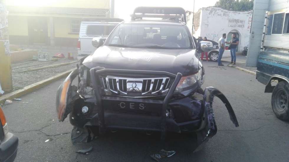 El policía viajaba en una patrulla sin placas de circulación y sin número económico pero tras darse a la fuga se impactó contra un vehículo por lo que fue detenido en el lugar mientras que dos sujetos más se dieron a la fuga.