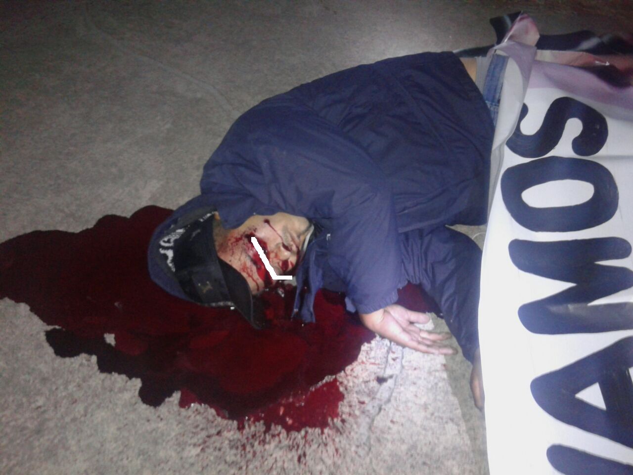 La víctima presentaba varios disparos por arma de fuego en la cabeza y la mitad de su cuerpo estaba cubierto con una lona con el mensaje "Vamos por ustedes atentamente la F.M Bar Ratón Azul".