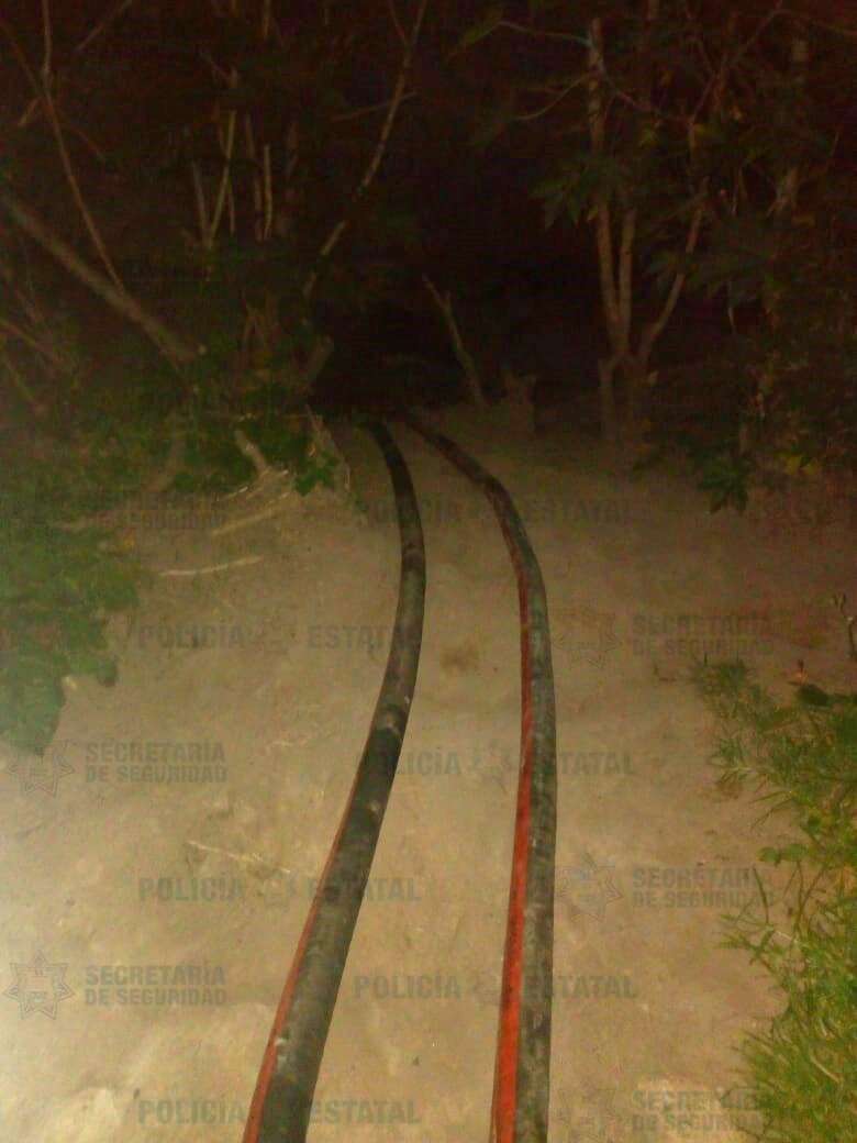 Al llegar a la avenida de las Granjas y Cabo Hornos encontraron una pipa con capacidad de 32 mil litros, abastecida al 25 por ciento de con un líquido similar a la gasolina, así como las dos tomas clandestinas, por lo que el área quedó bajo el resguardo de los efectivos de la SS.