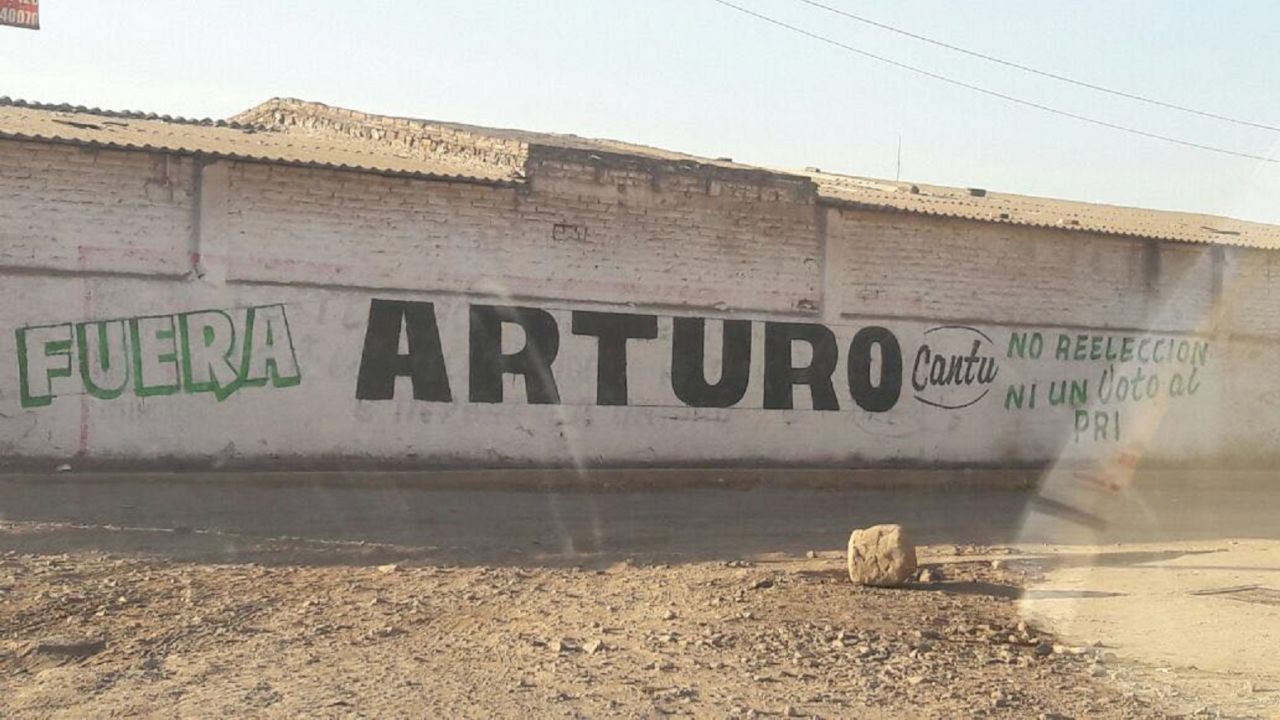 La tarde de ayer de manera repentina aparecieron algunas bardas pintadas en este municipio con la leyenda ’Fuera Arturo Cantú, No reelección ni un voto al PRI’ y algunas cartulinas pegadas en diversos puntos que decía ’Teotihuacán está en contra de la reelección’ lo que ha reflejado la gran inconformidad que existe entre la clase priísta de este municipio, al saber que el alcalde Arturo Cantú buscara ser candidato de este partido y reelegirse como presidente municipal nuevamente.