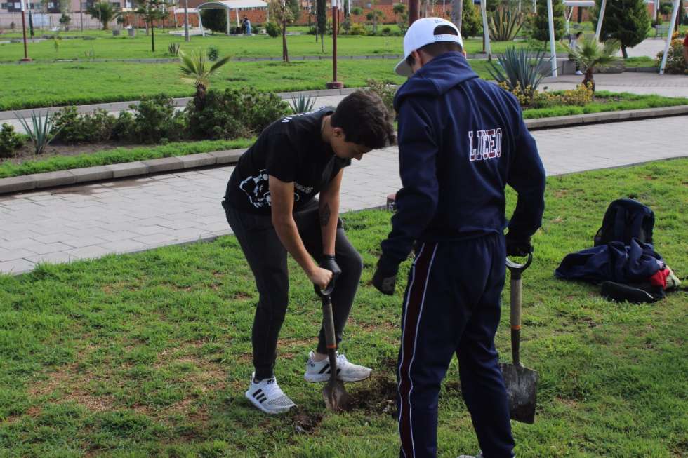 Texcoco, Méx., a 15 de junio.- La Dirección de Servicios Públicos de Texcoco, apoyó a estudiantes de Preparatoria del Liceo Fray Pedro de Gante, quienes realizaron una jornada de reforestación en la Alameda de Texcoco, en la que cada alumno adoptó el árbol que sembró, informó el titular de la dependencia, Vicente Govea Charles.
