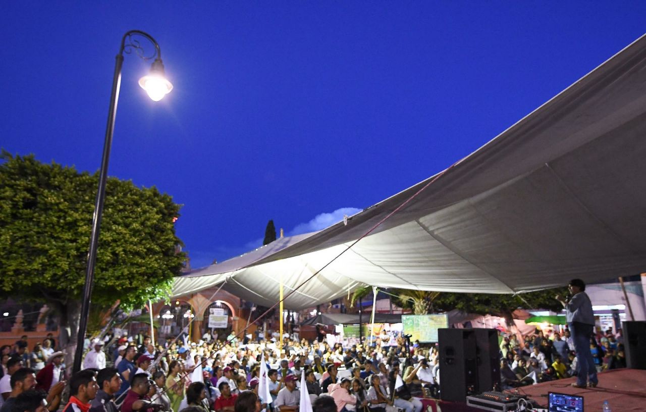 Duarte Olivares acompañó a la maestra Delfina Gómez a la asamblea informativa en Teotihuacán, donde el 51.5% del total de la población se encontraban en pobreza y el 63.7% no cuenta con seguridad social, de acuerdo con datos del Coneval.