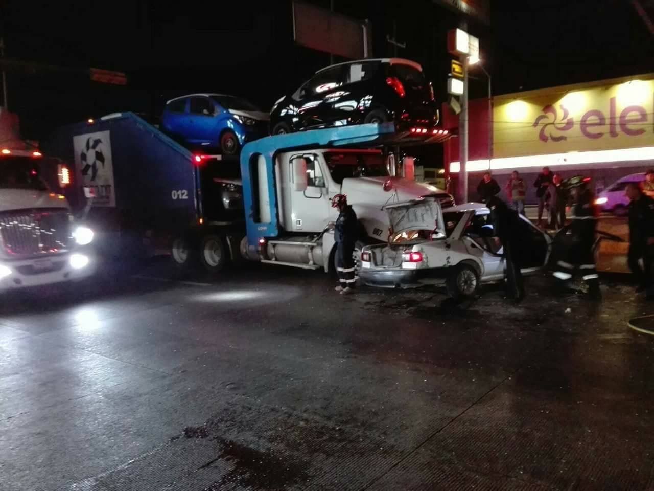 El vehículo, fue impactado por el costado izquierdo lo que le ocasionó la muerte de manera instantánea al conductor, en tanto el operador de la pesada unidad, con razón social ’Transportes y Traslados’, número económico 662 de la marca Freightliner de color blanco que transportaba varios automóviles último modelo tras el accidente, se dio a la fuga.