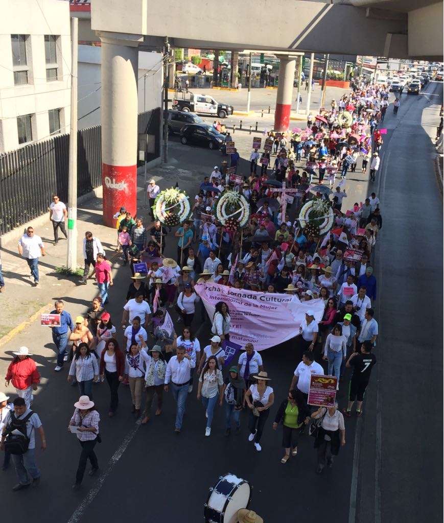 Ecatepec, Méx., 11 de marzo del 2018.- Un grupo de unas 500 mujeres, integrantes del movimiento ’Mujeres Unidas, en el Estado de México’ realizaron una marcha para exigir alto a los feminicidios que se registran en el estado de México y demandar a las autoridades mayor seguridad.