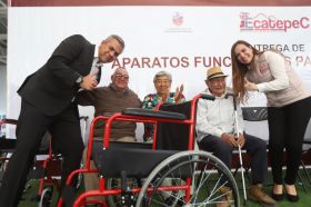El alcalde Fernando Vilchis Contreras reiteró que la entrega de sillas de ruedas, bastones y auxiliares auditivos, entre otros, continuará de manera personalizada en el domicilio de los beneficiarios.