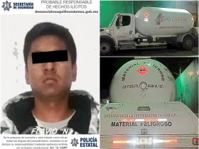 Detienen a sujeto que maneja una pipa con más 15 mil litros de Gas LP de dudosa procedencia en Atenco.