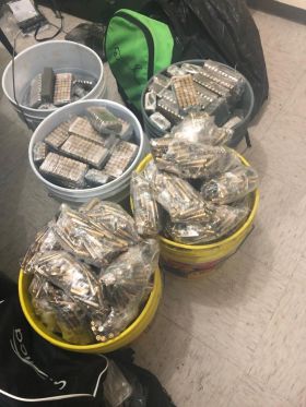• También fueron encontradas 20 cajas de herrería de las utilizadas para el transporte de granadas.