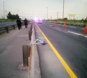*El policía identificado como Carlos Valente Robles Venegas circulaba sobre la autopista en una bicicleta color blanco cuando fue atropellado, quedando su cuerpo desecho.