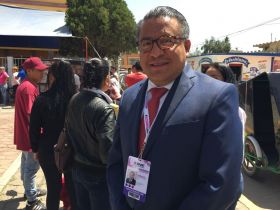*El candidato priísta a la Diputación local por el Distrito 39 con cabecera en Acolman llegó a la casilla electoral ubicada en el centro de San Marcos Nepantla en el municipio de Acolman.