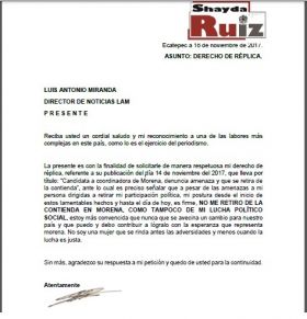 *La afectada quien participa en el proceso interno de selección para coordinadores distritales por MORENA en Ecatepec, relató que el mediodía del lunes 13 de noviembre, recibió una llamada a su teléfono celular.
