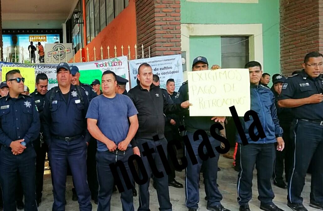 Teotihuacán, Méx a 30.de agosto.- Elementos de la Policía Municipal de Teotihuacán, realizaron un paro de labores en protesta porque aseguran no han recibido un pago retroactivo.
