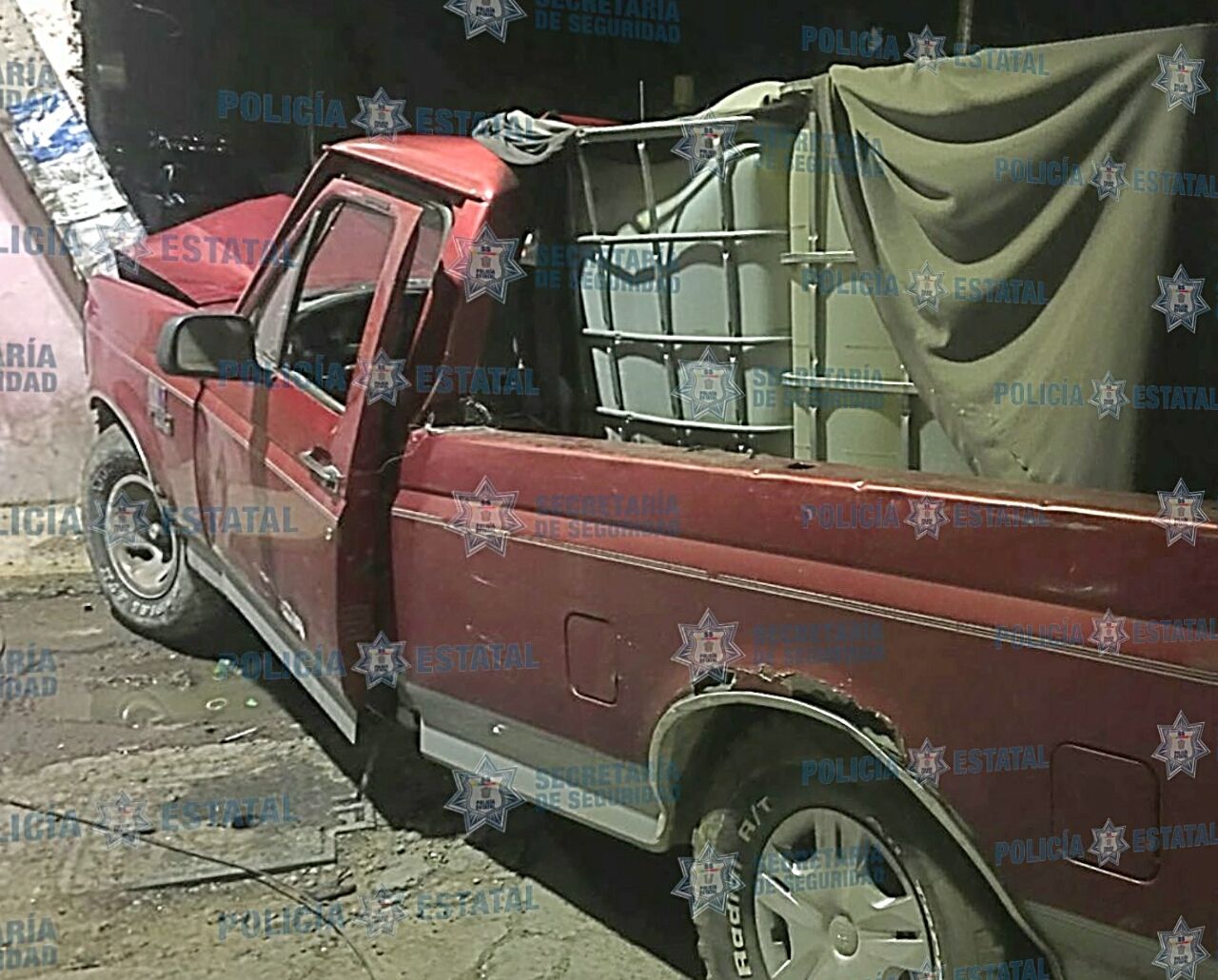Dentro de los operativos de seguridad, en la esquina de las calles de Golondrinas y Academia, poblado de Cuautlancingo, los elementos ubicaron una camioneta accidentada y abandonada, una Ford F-150, tipo pickup, modelo 1995, color vino, con matrícula de Hidalgo.
