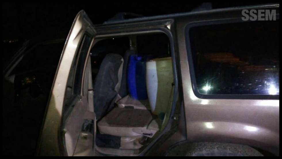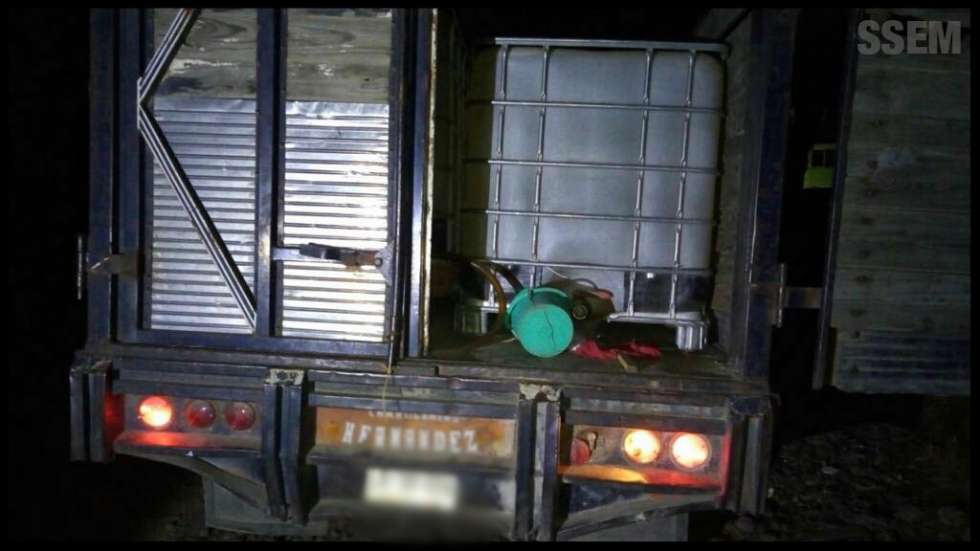Se aseguraron, además, tres camionetas Ford con placas de circulación del Estado de México; la primera con 15 garrafones de 50 litros, la segunda con dos contenedores cuadrados de 1000 litros, y la tercera con nueve garrafones de 50 litros; todos los recipientes, también al 90 por ciento de su capacidad.