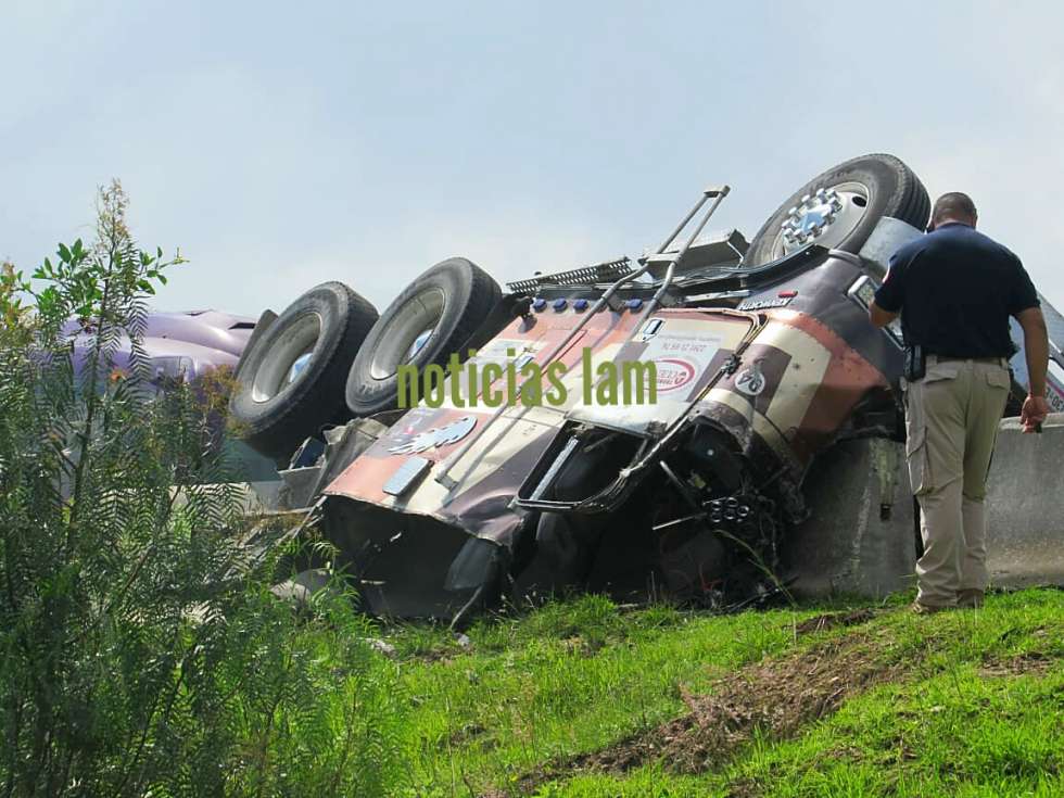 Al parecer, los hechos sucedieron cuando la caja del tráiler cayó a su lado derecho, mientras que la cabina se fue hacia el muro de contención.